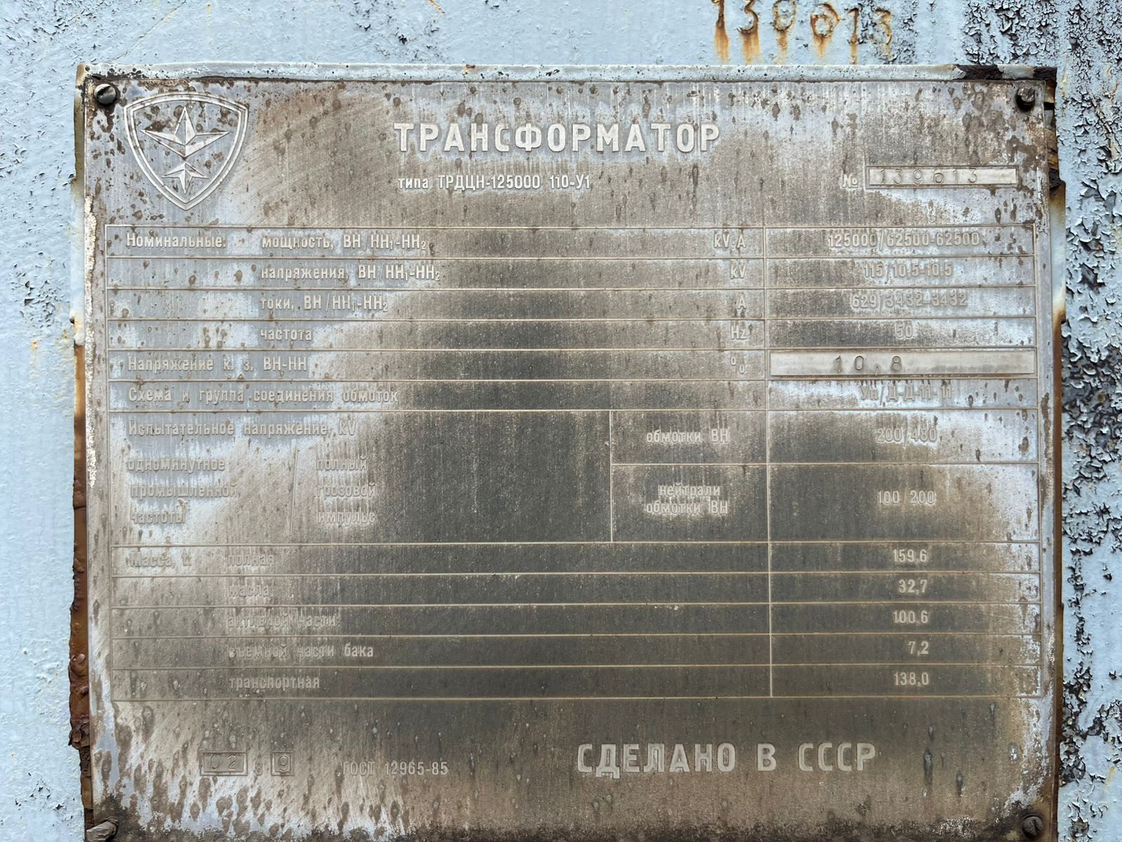 T28397 (SBL006910) - ТРДЦН-125000 110-У1 ძალოვანი ტრანსფორმატორის ელექტრული, ზეთის ქიმიური ანალიზი და ზეთში გახსნილი აირების ქრომატოგრაფიული ანალიზები