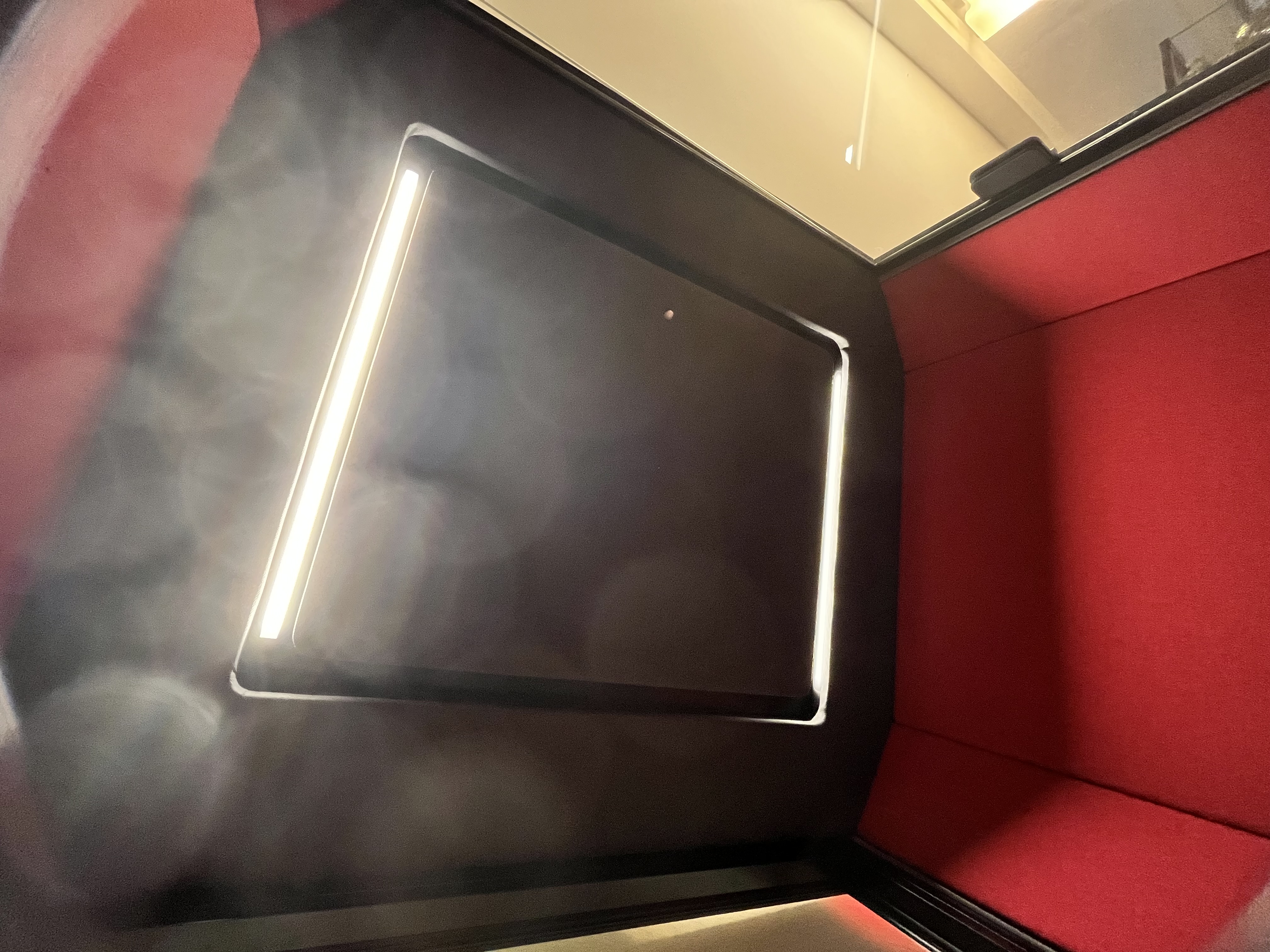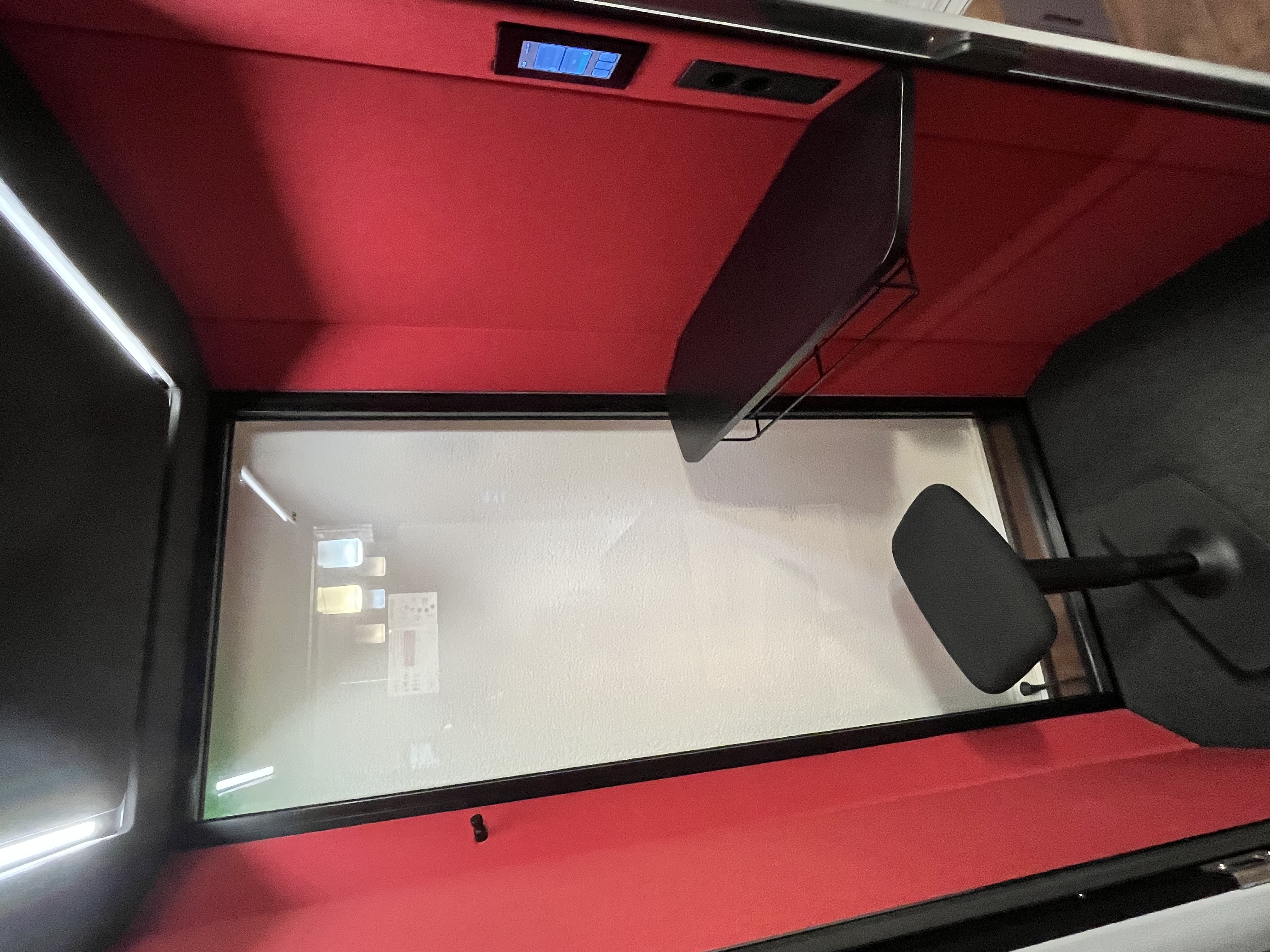 დეტალური სპეციფიკაციებიერთადგილიანი აკუსტიკური ოფისის კაბინა, შექმნილი სატელეფონო ზარებისთვის, ვიდეო შეხვედრებისთვის, კონცენტრირებული სამუშაოსთვის ანინდივიდუალური მშვიდი ამოცანებისთვის. ინტერიერი მოიცავს წითელ აკუსტიკურ პანელებს, ჩაშენებულ სამუშაო მაგიდას, ვენტილაციას, განათებასდა დენის როზეტებს.