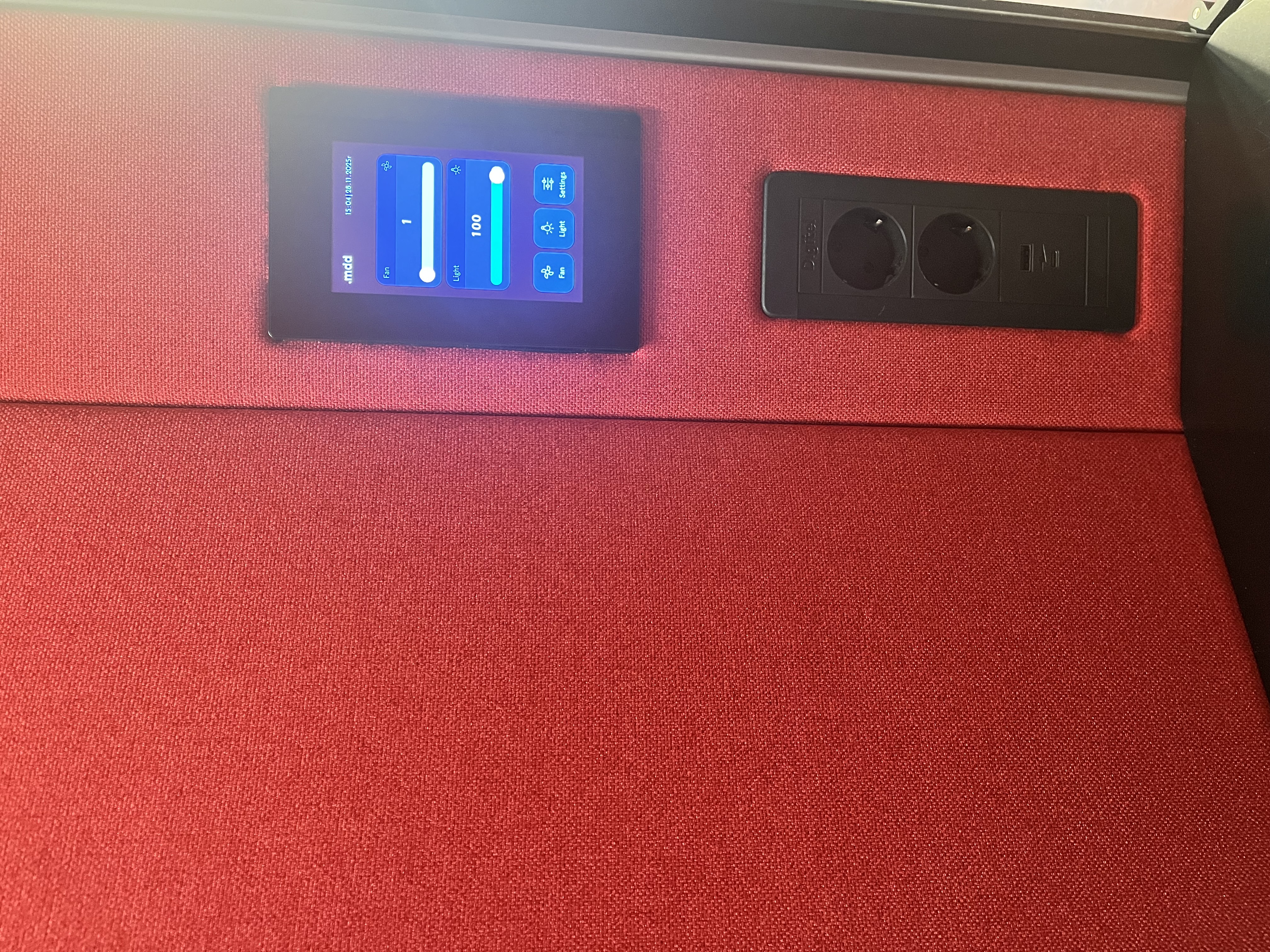 - LED ინდიკატორები კაბინის ზედა ნაწილში (მწვანე/წითელი) — სავარაუდოდ დაკავებულობის მაჩვენებელი.
